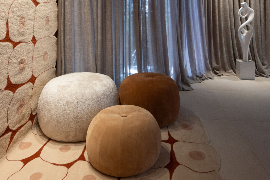 Pufes com medidas (DxA): 55x34cm / 62x45cm / 70x47cm